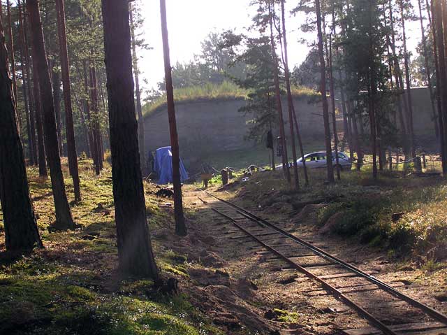 Nie kojarzysz, bo to wszędobylski Arczi wydobył spod ściółki. Rozjazd znajdował się za "strefą" (jakieś 100 metrów na północ od strzelnicy), obok ocalałego fragmentu bocznicy. Te tory nie miały połączenia z kolejką wąskotorową, służyły jako środek transportu bardzo miejscowego.