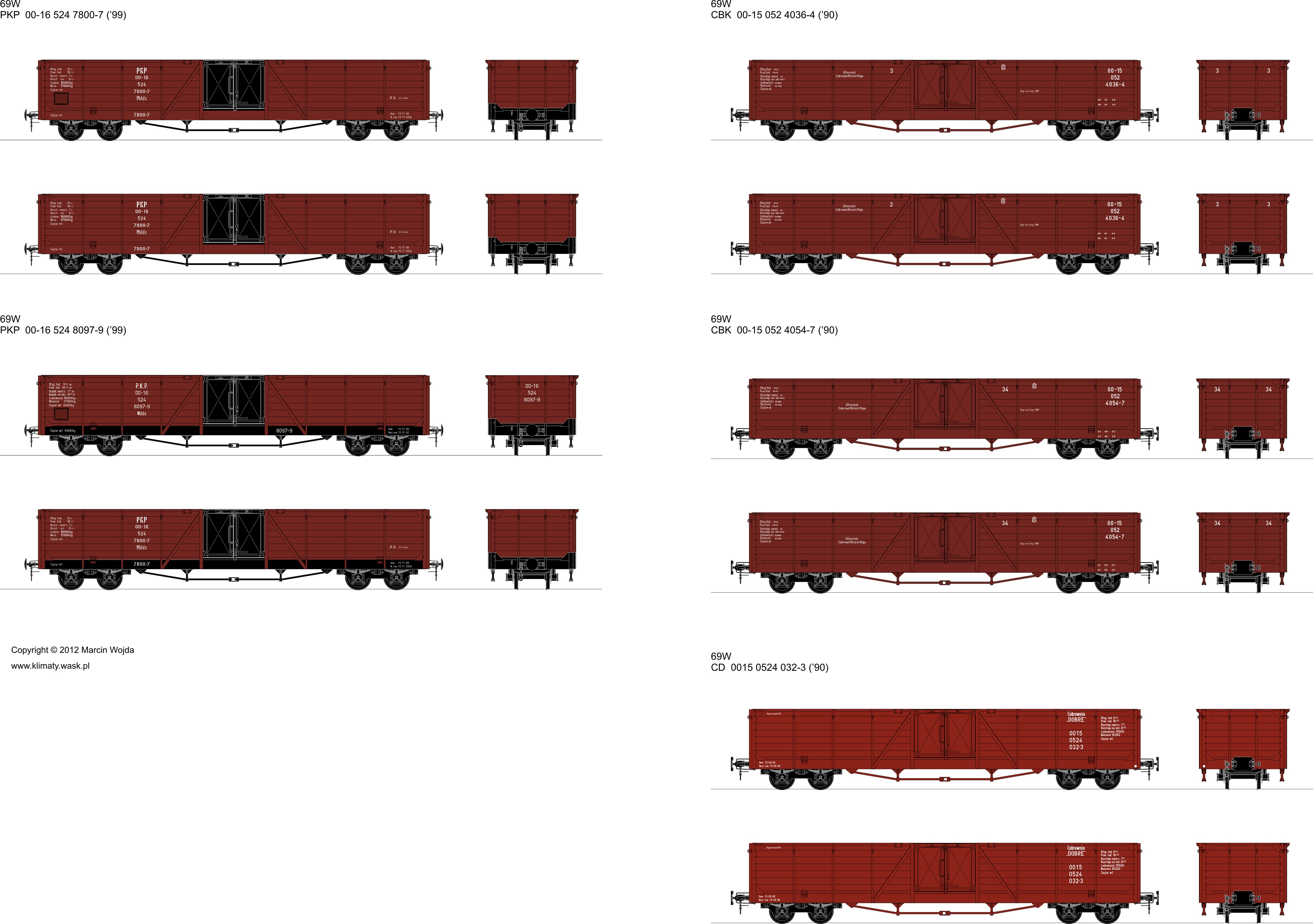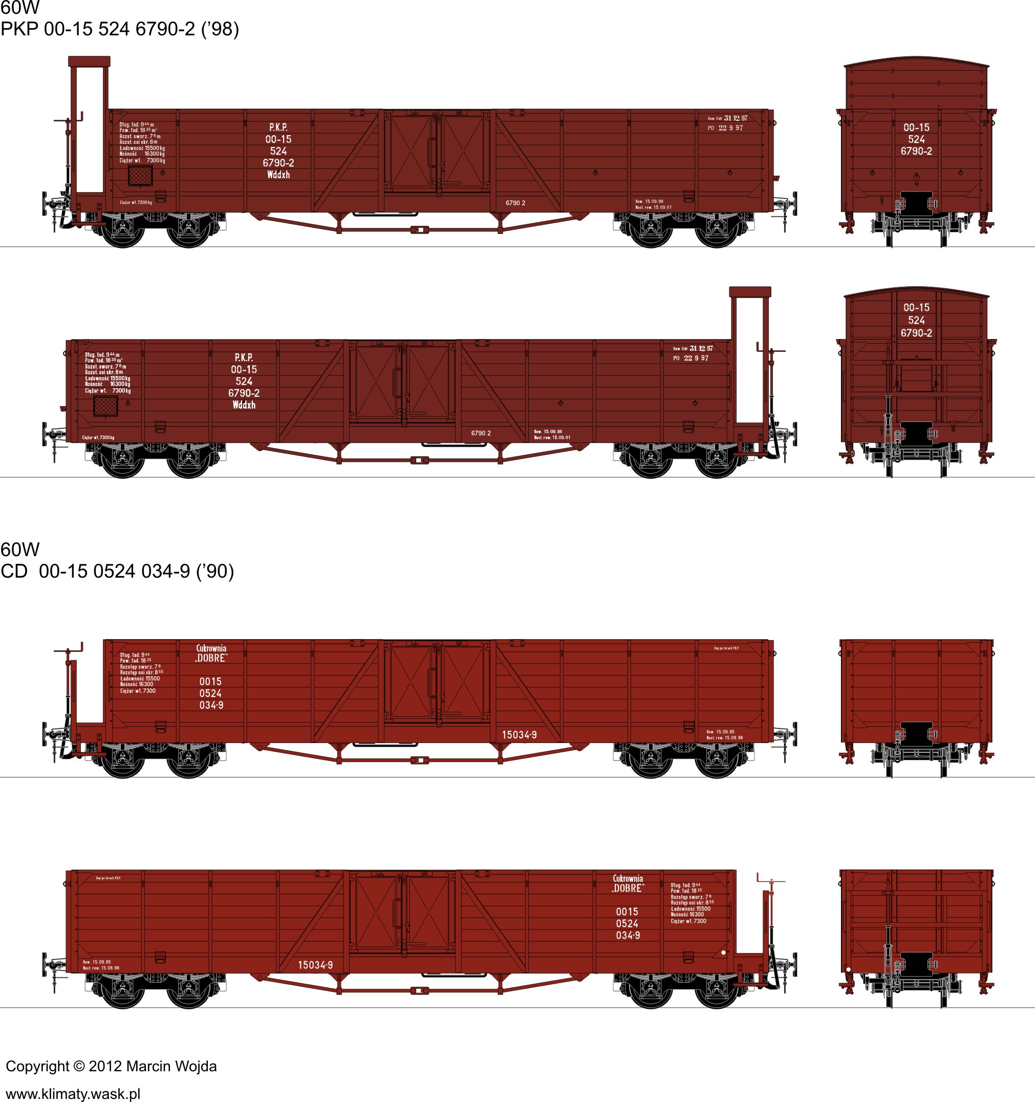 Na kolejach PKP zdecydowanie najczęściej spotykane było malowanie z czarną ramą i czarnymi drzwiami (ostatni schemat w drugim pliku: Wddx ...7999-7) i to zarówno dla długich numerów 12-cyfrowych jak i starych krótkich. Nawet na tej zał. przykładowej fot. widać, że ten wagon ma zamalowany czarny dół który "wychodzi" spod świeższego koloru brązowego nałożonego w ostatnich czasach PKP.