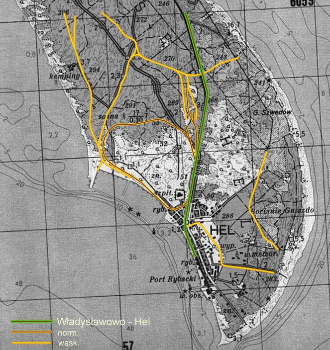 Na administrowanym przez nas terenie sa niemal calkowicie rozebrane tory waskie - jest tylko odcinek normalnotorowy idacy ze stacji kolejowej Hel.