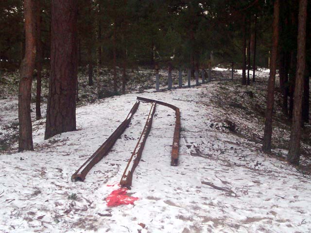 Na zdięciach widać pod tokami szynowymi jeszcze jakieś elementy stalowe. Może to do nich montowane były szyny.