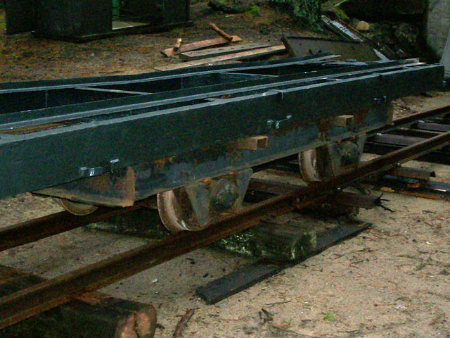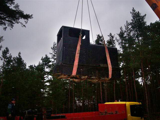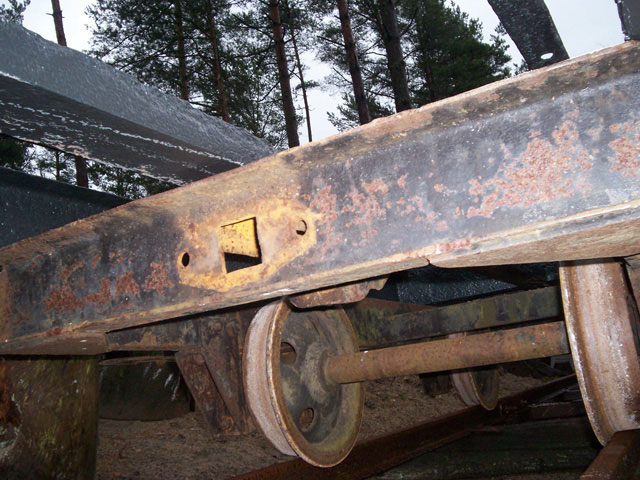 Odległość od muzeum do torów wojskowych wynosi około 700m licząc po starym nasypie torowym. Wiec na razie trudno przebyć ten odcinek ale staramy się bardzo mocno aby to był odcinek w pełni przejezdny i połączony z torowiskiem wojskowym. A co do taboru to co z tym wyłowionym z portu? Jeden wagonik już jest prawie skończony ( trzeba tylko przewieść wózek do muzeum i postawić na nim platformę )a drugi ze względu na złą aurę musi czekać do wiosny na lepszą pogodę i wtedy zaczniemy remont.