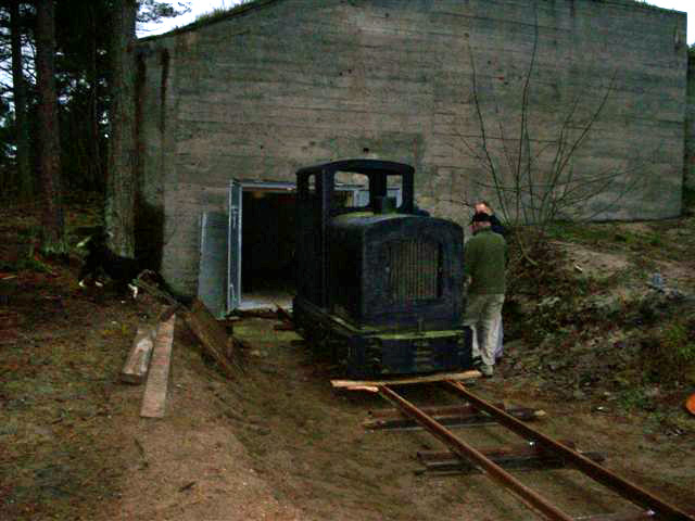 OTO JUŻ JEST!!! Nasza pierwsza lokomotywka.Po długich staraniach w koncu nam sie udało ja pozyskać i dostarczyć do Muzeum Obrony Wybrzeża na Helu.Jest to lokomotywka serii GLS 20.Jezdziła ona kiedys w cegelni Rzucewskiej nieopodal Pucka.Postawilismy ja narazie na prowizorycznych torach które mamy zamiar w przyszłym roku odbudowac odnowa w innym miejscu.Ostatnia fotka przedstawia ta lokomoywke z odkreconym dachem ponieważ wiazd do bunkra ma tylko 180 cm i z dachem by się tam nie zmiesciła.
