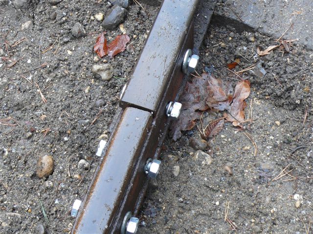 Sprytne przejście z szyny S49 na S32. Śruby łubkowe przed regulacją.