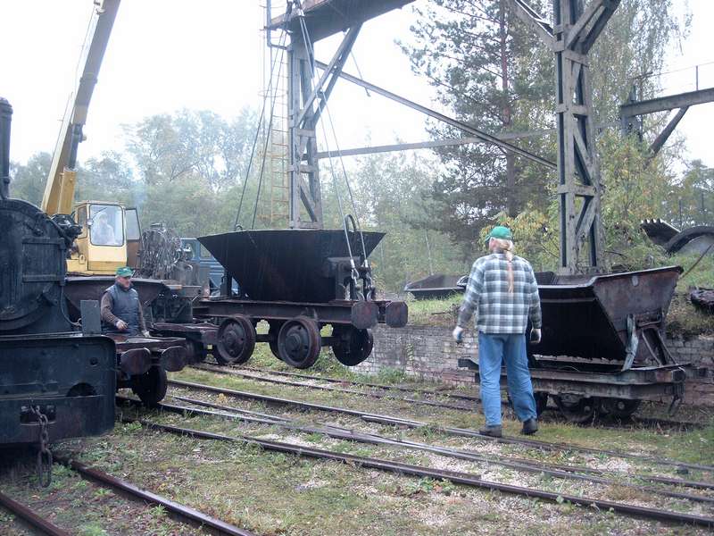 Prace na Wielkim Piecu rozpoczęliśmy od wymiany podkładów na torze głównym od strony archeo parku (fot. 1,2 ) Z godziny na godzinę pojawiało się coraz więcej rąk do pracy. Po zakończeniu prac związanymi z wymianą części podkładów na torze głównym i mijankowym postanowiliśmy spróbować ruszyć jedną z kadzi, walka trwała kilka godzin ale kadź wcale nie miała zamiaru ruszyć się z miejsca. Tuż przed wieczorem dokonaliśmy przetoku wszystkich wagoników stojących na torze do hali lejniczej.