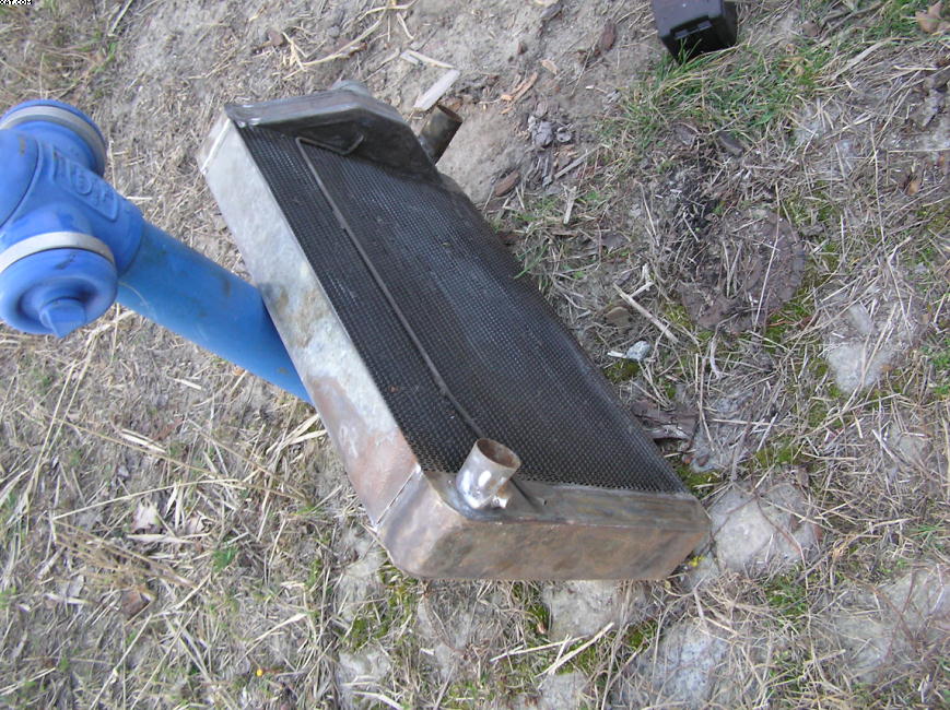 Coś mnie pokusiło, by rozebrać obudowę chłodnicy, no i szok... Na dolnej obejmie filc wszedł w symbiozę z obudową, wytworzył nie spotykaną gdzie indziej wykładzinę filcowo - żelazną. Jeszcze trochę a narodziłaby się z tego jakaś nowa forma życia :shock: