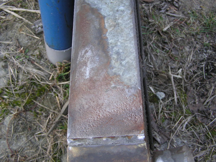 Nie lepiej wygląda sama obudowa chłodnicy - na zdjęciu połączenie blachy ocynkowanej ze wspomnieniem po ocynku....
