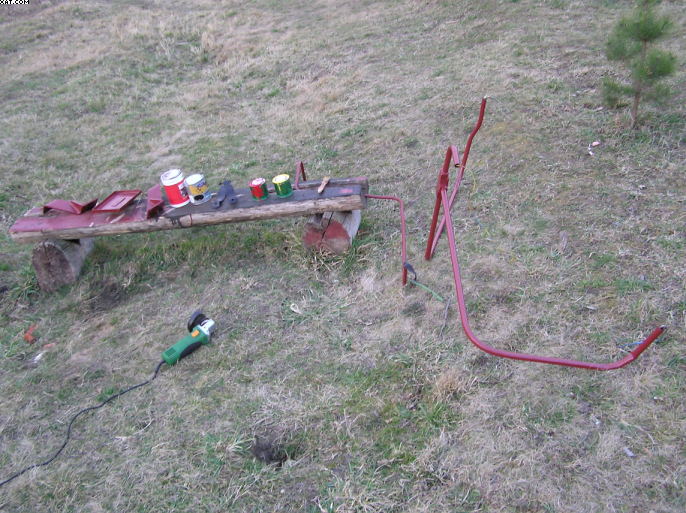 Warsztat malarski, jak zwykle. Nareszcie przełamałem się i oskrobałem "rurkę prądową" (jak toto się fachowo nazywa?)