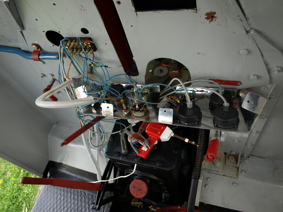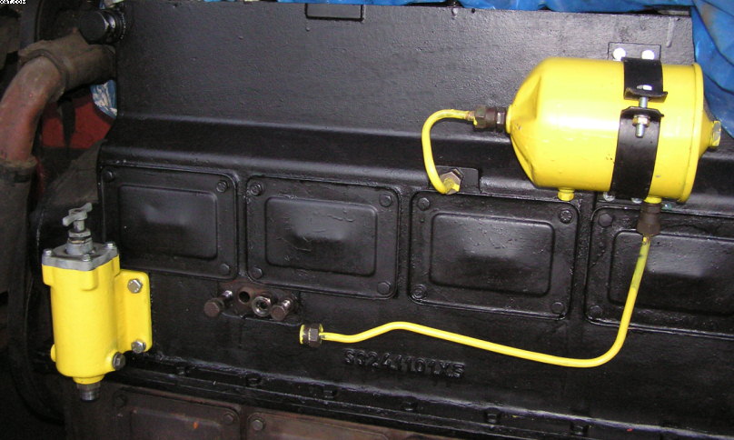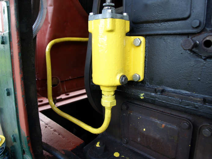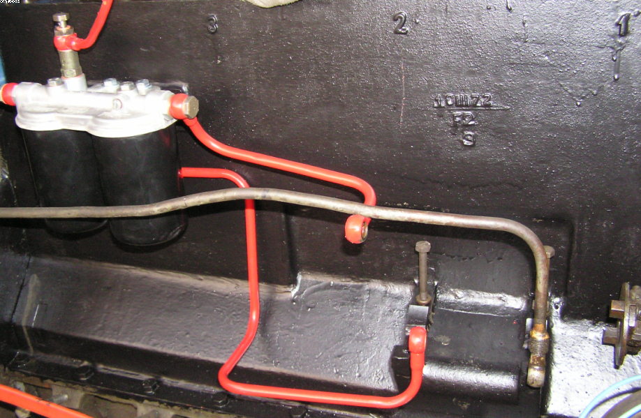 Chłodnica robi się powolutku, mam już nawet ocynk w spray'u. Tymczasem montujemy osprzęt silnika, oto oba filtry: I kilka elementów paliwowych: A tu moja duma: nowa (!) orginalna (!) rura łącząca pompę wodną z chłodnicą, nabiera obowiązującego koloru  Udało się dostać orginalną skrzynkę bezpiecznikową I zamontować na miejscu Oraz pomalować , uzbroić w nowe przewody najbardziej kłopotliwy do malowania element lokomotywy....