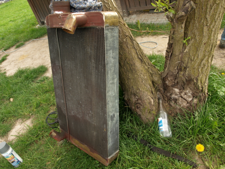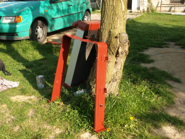 No to co, idziemy dalej? Rozebrana chłodnica - jak wspominałem wcześniej, nieco pokorodowana.  Dałem radę - nie cieknie. Boki potraktowane cynkiem w spray'u, reszta tradycyjnie.   Kolejne etapy przygotowania podstawy (nowy filc)    Przygotowujemy więc lokomotywkę ze skrzydełkami...  I montujemy chłodnicę  I drugą chłodnicę  A także osprzęt do niej  No i przy okazji trochę detali  Jutro bawimy się w montaż elektryki
