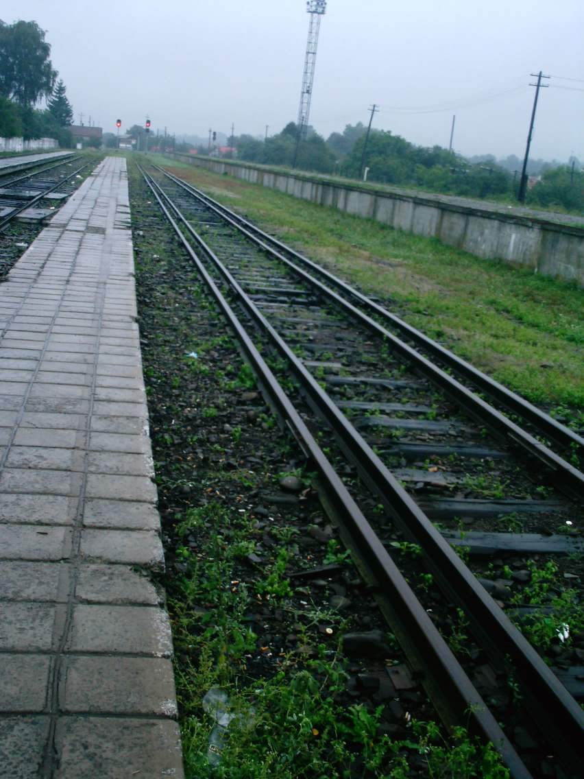 Stacja Chyrów, nasz tor z Przemyśla. Sam byłem ciekaw jak jest to rozwiązane wjeżdżając na stację z Krościenka - bo latem 2007 r pociąg kursował tylko na trasie Sanok - Chyrów.