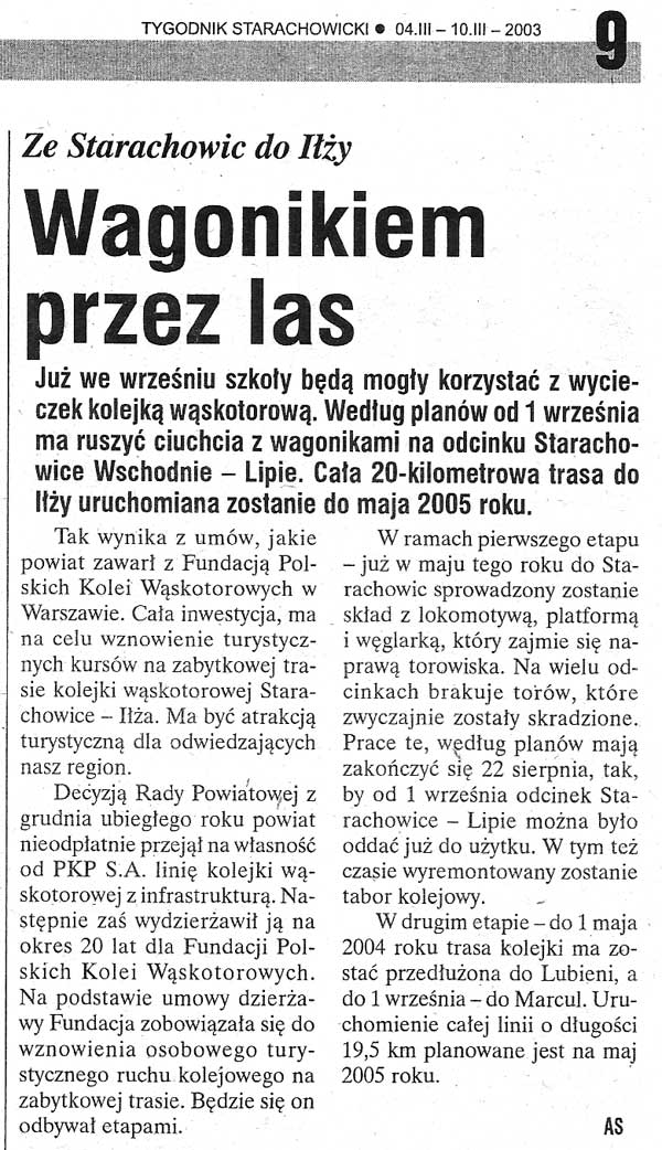 Mając na uwadze dobre relacje nowego prezydenta ze starostwem, mam nadzieję że w jakiś sposób będzie wspomagał naszą kolejką.