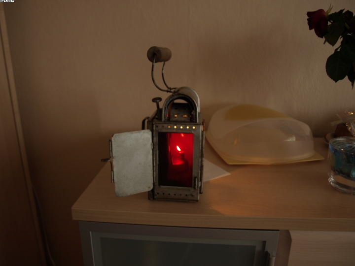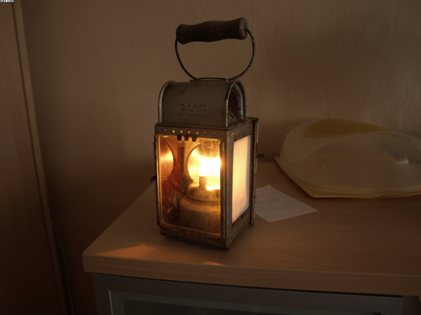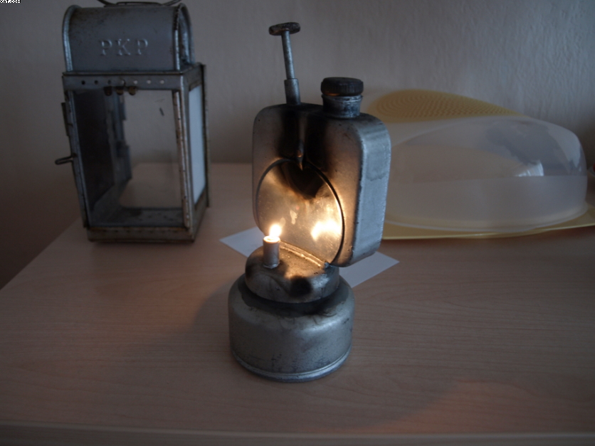 Nie karbidowa, ale lampka kolejowa, akumulatorowa.
