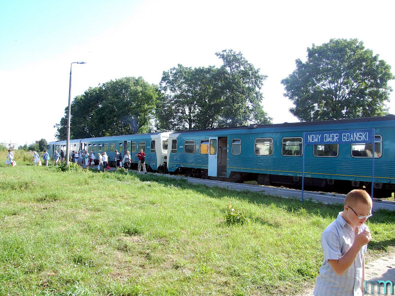Do Sztutowa dojadą nieliczni, dzięki czemu konduktorzy mogą wreszcie sprzedawać bilety. Postanowiliśmy być uczciwi (głupi :?: ) do bólu i poprosiliśmy o bilet z Grudziądza do Sztutowa i z powrotem. Okazało się, że tłok taki, bo jedzie wycieczka: 80 szt. emerytów z kijkami, ale na bok narciarze, bo oto zbliżamy się do celu.