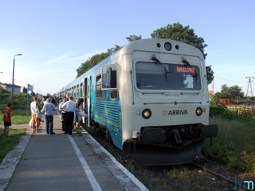 Nagle świst, obroty rosną i ruszamy. Koła stukają na złączach szyn (coraz mniej takich linii), wagonem mocno buja, ale ogólnie ujdzie. Pociąg zatrzymuje się na przystankach i opuszczonych stacjach. Zbliżamy się do Kwidzyna. Tutaj dość liczna grupa pasażerów, część z rowerami. Okazuje się, że na rowery miejsca już nie starcza i cykliści zostają na peronie  :evil: . To samo na kolejnych stacjach aż do Malborka. W Malborku trochę osób wysiada, ale więcej wsiada.
