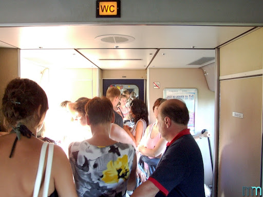 Z czasem podróżnych przybywało. W końcu zrezygnowani wsiedli i ci, którzy próbowali kupić bilet w kasie - tyle że dla nich miejsc siedzących zabrakło. Trudno - life is brutal...