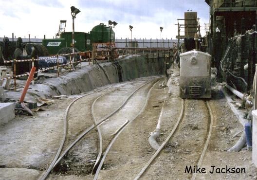 Zdjecie nr 2: w tym miejscu znajdowala sie linia do obreczowania zestawow kolowych, po tym wezszym torze najprawdopodobniej poruszal sie wozek technologiczny.