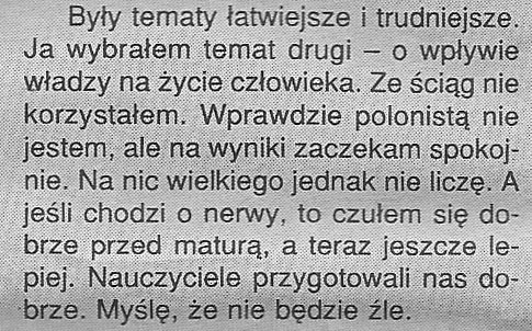 Wypadałoby podpowiedzieć. Otóż wygrzebałem z tydzień temu jakieś stare gazety. Wśród nich to co zamieściłem w prasówce SKW. Ale wśród makulatury były gazety nieco (niewiele) starsze. Wśród nich, w rubryce z cyklu bieżących wypowiedzi powyższy zeskanowany cytat.