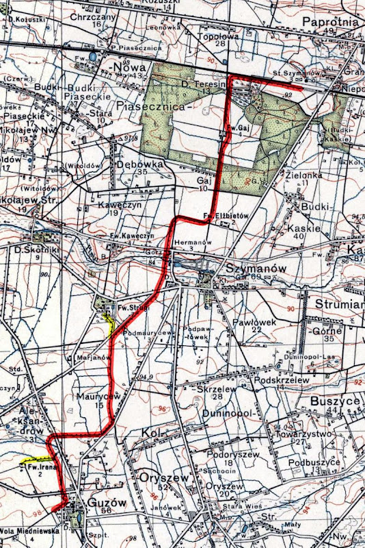 Wczoraj po drodze zahaczyłem o Szymanów. Czasu mało więc skoncentrowałem się na wspomnianych mostkach i odcinku w okolicach kilku chałupin zwanych niegdyś Gaj.