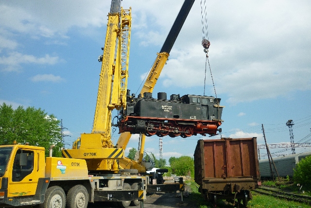 Za logistykę załadowania ciężarowki w Benndorfie oraz przygotowanie na transport (m.in. zabezpieczenie parowozu przed ewentualną kradzieżą) odpowiadał sprzedający. Wsparcie miał - przede wszystkim przy rosyjskojęzycznej korespondencji oraz przy załatwieniu umowy ora innych potrzebnych dokumentów - ze strony polskiego Interloku. Zamówiony przez DHL przewożnik drogowy rownież pochodził z Polski. W Białymstoku nastąpiło przeładowanie parowozu na szerokotorowy wagon kolejowy z Rosji, a dalszą trasę parowóz już pokonał przyzwoicie, czyli - koleją...
