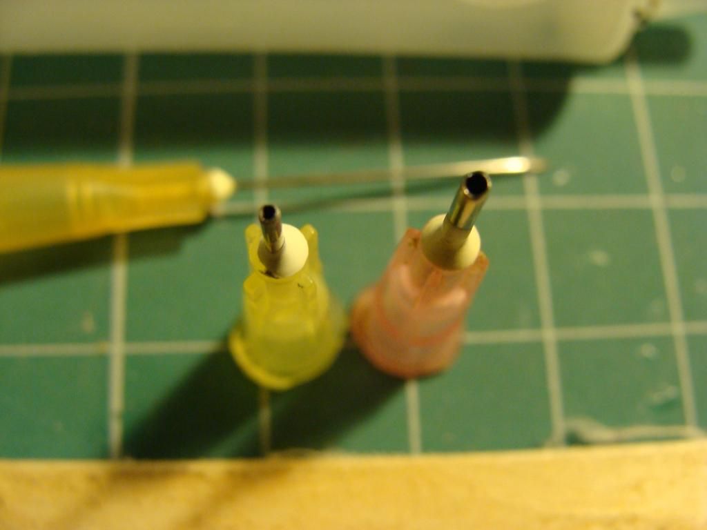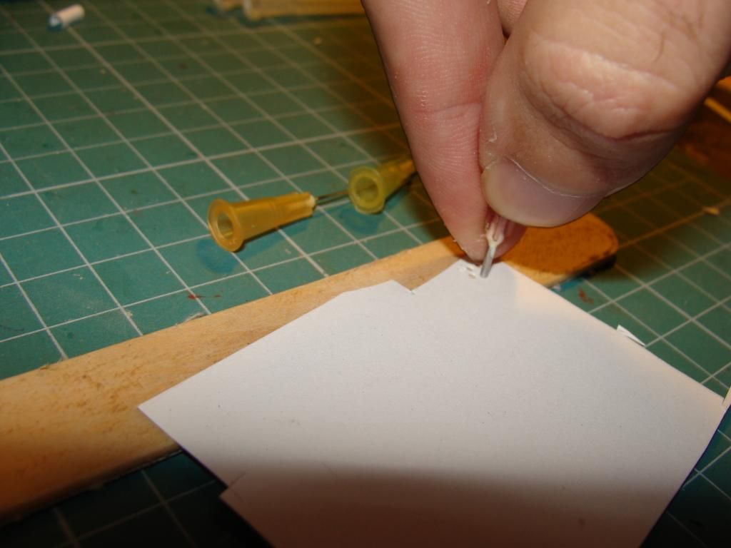 Nity robię igłami lekarskimi, które przycinam na odpowiednią długość i ostrze je na papierze ściernym, następnie zakładam gotową końcówkę na strzykawkę i wybijam nity z bloku technicznego pod spód wkładam coś drewnianego, gdy wybije np. 6 sztuk to wpycham je do strzykawki cieniutką igłą, i tak właśnie wygląda mój proces technologiczny wybijania nitów, przy okazji zamieszczam kilka zdjęć:
