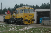 - Typowa drezyna na bazie przyczepy do ciągnika siodłowego(?), koła kolejowe, oddziałuje na urządzenia SRK. Napęd spalinowy, przekładnia elektryczna, dwie kabiny, masa własna około 1 tony, moc około 80 kW(...)